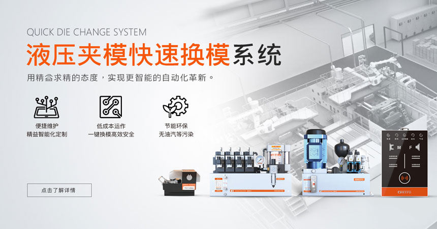 液壓快速換模系統 格萊富注塑機快速換模系統采用 TY 夾模器,以油壓驅動取代舊式固定夾的方式,不需要在模產過程中,短時間內輕易完成換模作業,更省時省力。目前已在家電,汽車、機械等行業豐富應用